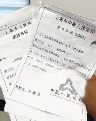 半信半疑的小美,次日拨通了“民警” 提供的电话,对方让小美申请财产保全,如果不信可以接收两份传真通知。小美随后看到,传真过来的上海市公安局“逮捕通知”和上海市中级人民法院“资金冻结书”上,均有自己的照片以及身份信息(如右图)。