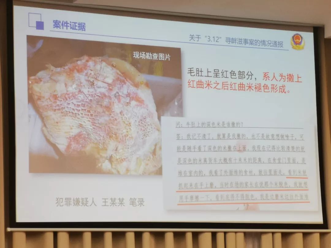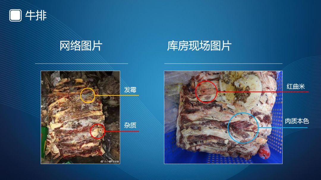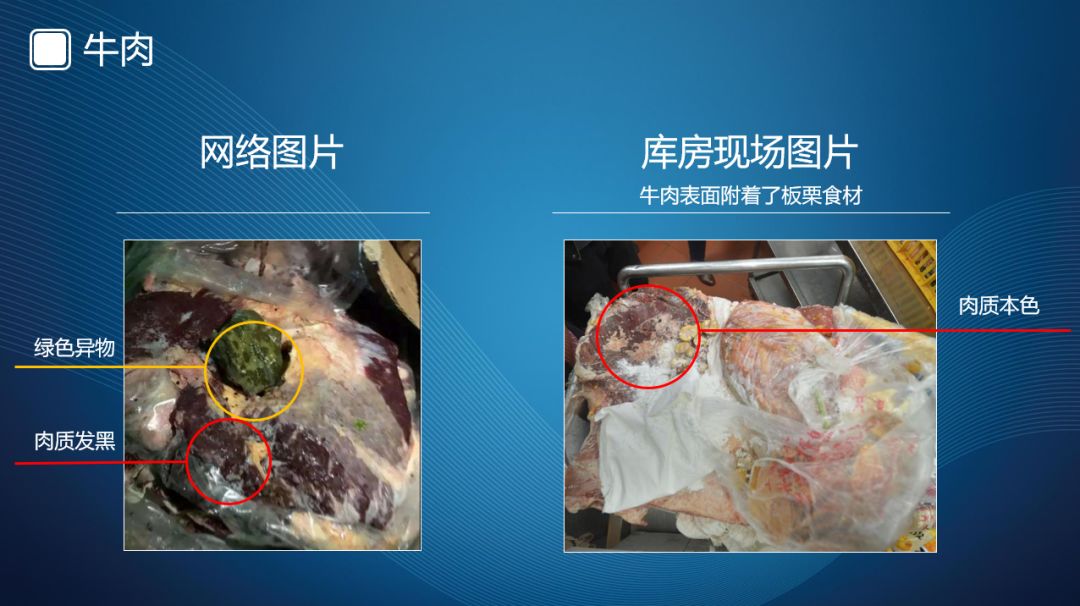 检测机构法定代表人: 检测结果没有受到任何第三方干涉或影响 发布会上,四川源坤国科质量检验有限公司法定代表人高柱就机构取样、检测及结果发布情况作了相关说明,具体如下: 3月12日晚,公司人员接成都市温江区市场监督管理局通知,委托该公司安排人员前往成都七中实验学校应急取样。 3月13日凌晨,在现场家长及成都市温江区市场监督管理局见证下,该公司现场提取19批次样品,其中1批次为用于清洁地板的工业碱,不属于食材范畴。其余18批次食材样品为金锣火腿肠、天健肉饼、牛排、即食血豆腐、油条、粬米、毛肚、扇贝、鸡蛋、珍珠汤圆、葡式蛋挞皮、特级甜红椒、红太阳咸蛋黄、水妈妈牌冬阴功酱、鱼头剁椒、粉丝、粉条、泡菜。每批次样品取三份,一份检样、一份备样、一份家长留存样,所取样品均有家长代表在封条上签字确认。 18批次食材样品中4批次为即食性包装产品,7批次为非即食性包装产品;7批次为散装产品。即食性包装产品独立包装数量不足。 依据样品明示执行标准、标签明示值、相关食品安全国家标准和样品状况,确定了感官、营养成分、真菌毒素、兽药残留、重金属、食品添加剂、非法添加物、致病菌等33个检测项目。针对取样现场混乱、样品数量不满足检测标准规定的情况,开展了沙门氏菌、金黄色葡萄球菌等24个项目的监测。 检测结果除粉条样品有霉斑,检验结论不合格外,其余17个样品目前所检项目未发现问题,另有3批次样品沙门氏菌明天早上有初步结果。 本次检测严格按照检测程序和标准进行,并安排对检测过程现场监督,对检测质量采取加标回收等方式进行质量控制,保证检测数据准确性。同时检测结果没有受到任何第三方的干涉或影响,备份样品保存完好。 成都市市场监管局公布 18批次食材溯源情况: 学校食材由4家供货商提供 其中有150斤不合格粉条 发布会上,成都市市场监管局局长贺欣介绍,3月15日,成都市市场监管局对成都七中实验学校食材开展了溯源调查,并对网络流传图片中的相关食材进行了检测。 贺欣介绍,经查,四川德羽后勤服务公司食材分别由4家供货商提供。取样的18批次食材溯源情况如下。 (一)德优康农副产品配送有限公司供货情况 刚才发布的检测结果中,粉条不合格。经查,不合格粉条生产企业为郫都区清全粉条厂,生产日期为2018年12月13日。该批粉条供货日期为3月1日,共5件150斤,已使用105斤、剩余45斤。目前,剩余粉条已经全部封存;已立案调查。 粉丝:2018年12月至2019年2月共供货4批次5件。 油条:2018年10月至2019年2月共供货25批次321件。 金锣火腿肠:2018年10月至2019年1月共供货7批次167件。 水妈妈牌冬阴功酱:2018年10月共供货1桶。 牛排:2018年10月至2019年2月共供货8批次19件。 鱼头剁椒:2018年10月至今共供货5件。 泡菜:2018年10月至2019年2月共供货9批次49.5件。 天使肉饼:2018年11月至2019年1月共供货17批次57件。 即食血豆腐:2018年10月至2019年2月共供货33批次195斤。 珍珠汤圆:2018年10月至2019年2月共供货13批次100件。 红太阳咸蛋黄:2018年9月共供货1件。 特级甜红椒粉:2019年3月共供货2件。 红曲米:2018年8月至2019年2月共供货61斤。 该公司位于成都市高新区,取得营业执照,食品经营许可证。 (二)温江王氏水产店供货情况 毛肚:2018年10月至2019年3月共供货49批次1019斤。 该公司位于成都市温江区,取得营业执照,经营范围为食用农产品销售。 (三)温江晓诚禽蛋店供货情况 鸡蛋:2018年10月至2019年3月共供货17批次50716.6斤。 该公司位于成都市温江区,取得营业执照,经营范围为食用农产品销售。 (四)四川联发体食品有限公司供货情况 蛋挞皮:2018年10月至2019年2月共供货17批次117件。 该公司位于成都市金牛区,取得营业执照和食品经营许可证。 成都市市场监管局调查网传图片: 肉夹馍表面为饼皮渣和冰晶, 没有发霉 牛排表面没有发霉, 实为红曲米 发布会上,成都市市场监管局局长贺欣介绍,3月15日,成都市市场监管局对成都七中实验学校食材开展了溯源调查,并对网络流传图片中的相关食材进行了检测。 贺欣介绍说,事发后,网络流传了一些被认为是发霉、变质的食材照片。为此,温江区市场监管局执法人员,第三方技术机构检验人员,成都七中实验学校校领导、校方管理人员和教师代表等,对当天现场封存于学校食堂冻库的食材拍摄了照片。 第一组是肉夹馍照片。左边是网络流传的所谓发了霉的肉夹馍照片;右边第一张拍摄于冻库、第二张拍摄于实验室。大家可以看到,左右两边照片的肉夹馍色泽有明显差别,从右边的照片可以清楚看到,肉夹馍表面白色部分为饼皮渣和冰晶,不是发霉的肉夹馍。 第二组是牛排照片。左边是网络流传的所谓发霉、有杂质的牛排照片;右边是拍摄于学校冻库的牛排照片。大家可以看到,右边照片清楚显示,牛排表面没有发霉,所谓“杂质”实际上是红曲米。右上角的白色物为肉夹馍。 第三组是鸡腿照片。左边照片是网络流传的使用了硫磺的鸡腿;右边照片清楚显示,鸡腿表面的黄色粉末实际上是姜黄粉,根本不是硫磺。 第四组是鱿鱼照片。左边是网络流传的污染了的鱿鱼照片;右边照片是冰冻鱿鱼的色泽正常,其上附着的黄色、绿色物为玉米、豌豆、火腿肠等其它食材。 第五组是牛肉照片。左边是网络流传的所谓变质牛肉;右边是冻库拍摄的牛肉照片,大家可以清楚地看到冰冻