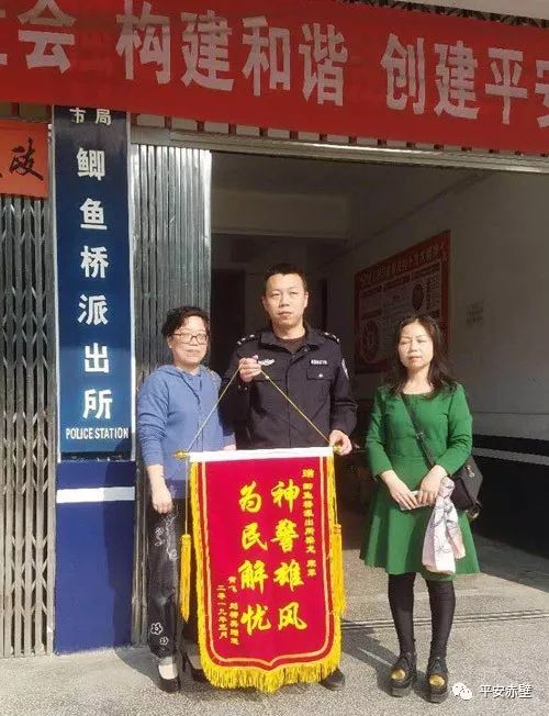 3月20日上午,刘女士与母亲一起专程来到赤壁市公安局鲫鱼桥派出所,向危险时刻及时救助其父亲的民警送上锦旗表示衷心感谢。