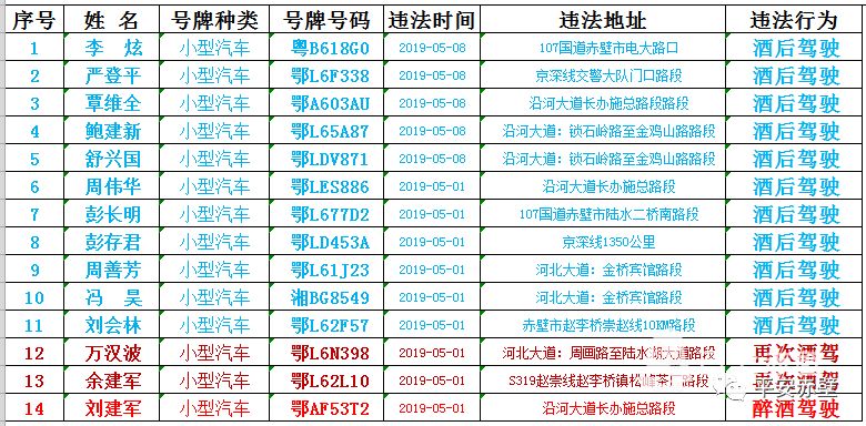 赤壁交警又曝光一批酒驾醉驾的