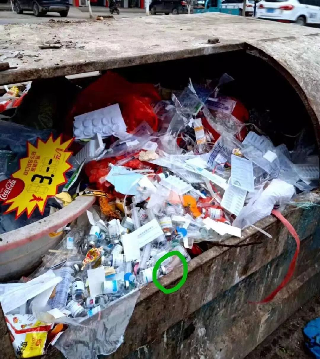 △举报地医疗垃圾与生活垃圾混放在垃圾箱