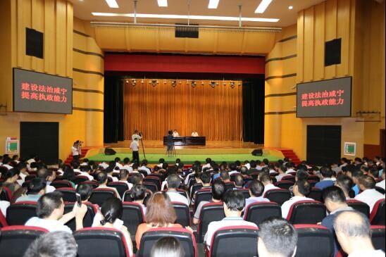张绍明围绕"学习贯彻四中全会和《实施纲要》精神 加快建设法治湖北与法治政府”主题作了辅导报告,重点讲解了重点讲解了四中全会的重大意义和基本内容、法治的基本内涵、法治政府建设中存在的主要问题、加强法治政府和依法行政建设的对策分析,阐述了推进依法行政,加强法治政府建设要着力强化“三心”、“五性”,对推进法治咸宁建设具有十分重要的指导意义。
