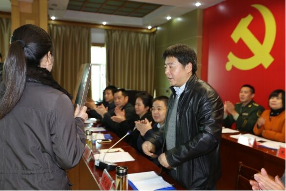 图为咸安区委书记李文波为咸安区法学会授牌
