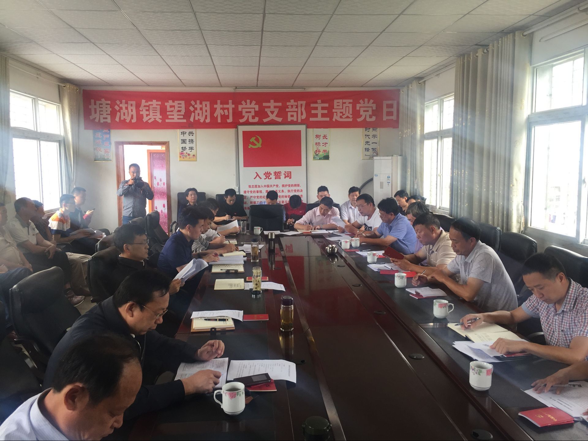 在望湖村委会议室,吴晖和大家围坐一堂,交纳党费,齐诵党章,学习党规党情,听取村务公开情况。就如何开展“两学一做”,吴晖在与党员代表交流中提出,要对习近平总书记系列重要讲话进行系统学、深入学、跟进学,形成与工作岗位相匹配的政治眼力、理论功力、工作能力。要心中有信仰,不断补足精神之钙。要眼里有群众,加强群众血肉联系,把群众的“痛点”作为工作的切入点,解决群众实际困难。要手中有绝活,不断提升工作能力水平,丰富工作方式方法,将每项工作做透、做出实效。