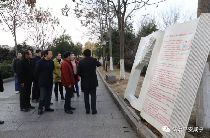 11日下午,考核组听取市委、市政府工作汇报后,观看了“法润香城,平安泉都”法治综治工作专题片,随后,考核组来到市十六潭法治文化主题公园、咸安区浮山中小学、浮山办事处银泉社区、咸安公安分局官埠桥派出所的法治综治工作进行实地考察。