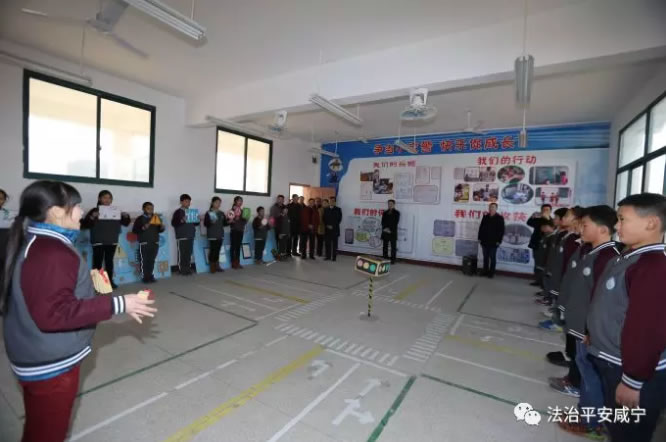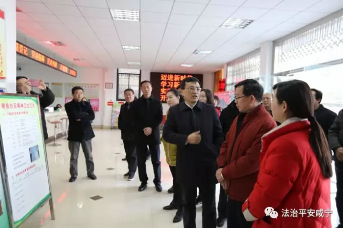 图为检查组实地考察咸安区浮山中小学法治平安校园建设