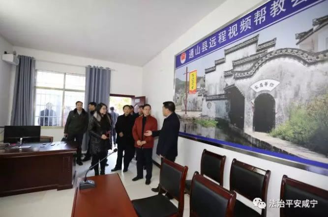 图为检查组实地考察通山县司法局社会矫正中心