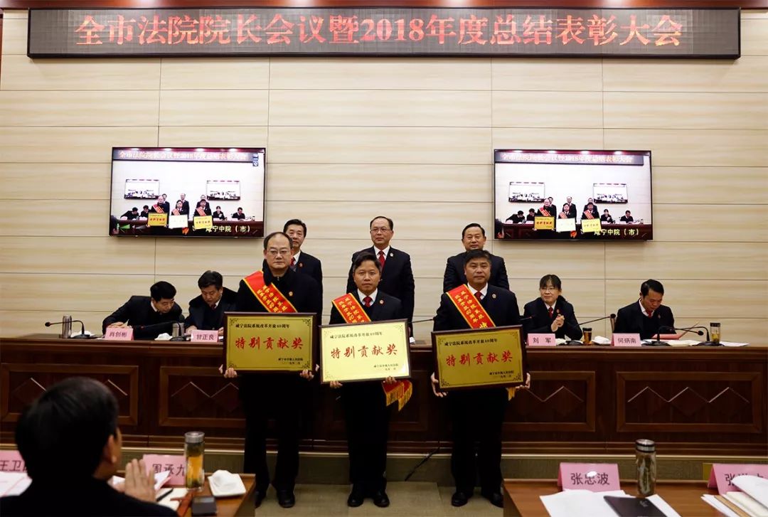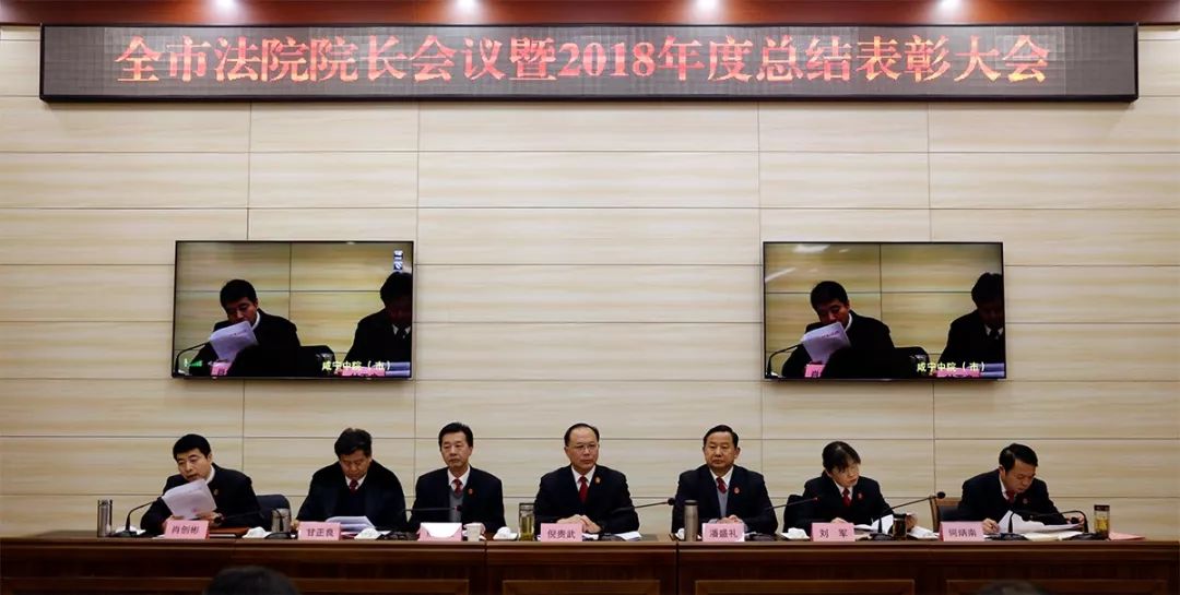 2月18日,咸宁中院召开全市法院院长会暨2018年度总结表彰大会。咸宁中院党组书记、院长倪贵武出席会议并讲话,院党组全体班子成员及全市法院干警参加会议,党组副书记、副院长熊震主持会议。会议以视频会议形式召开,同步在咸宁中院执行指挥中心及各基层法院设立分会场。